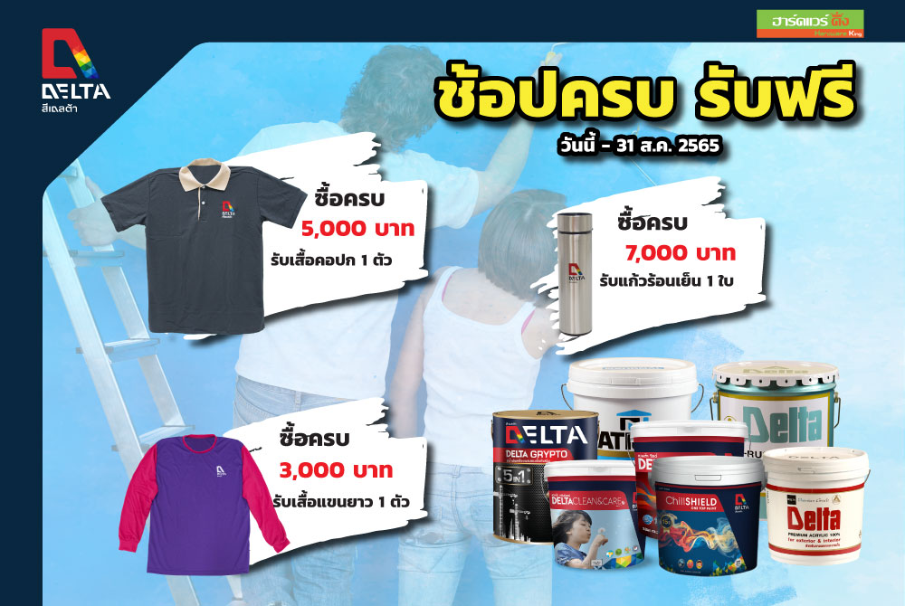 3.เมื่อซื้อสินค้าแบรนด์ Delta ครบ 5,000 บาทขึ้นไป รับเสื้อคอปก 1 ตัว